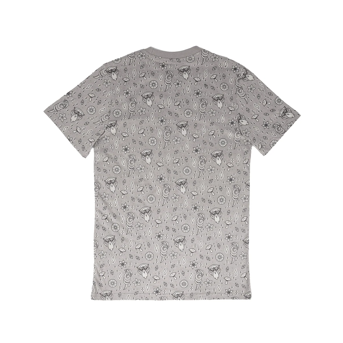 Commemorate the mischievous Fearne Calloway in this super-comfy pocket t-shirt featuring all her favorite things. Snakes and poisonous flowers swirl across a soft taupe backdrop while Little Mister sits happily across the pocket.